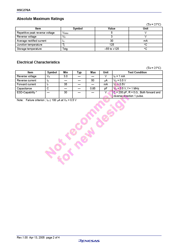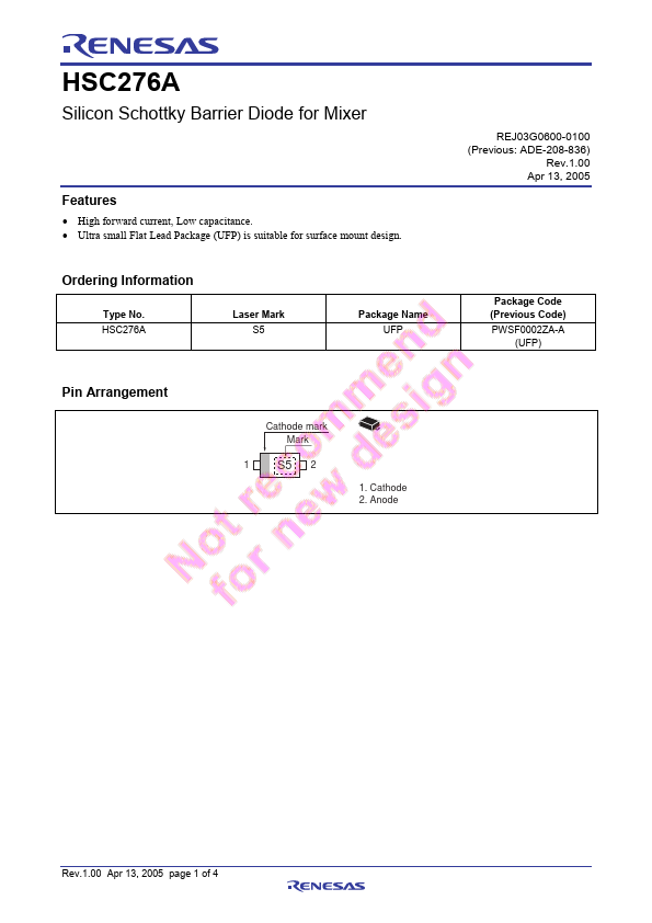 | HSC276 | Silicon Schottky Barrier Diode for Mixer | Hitachi Semiconductor | |
