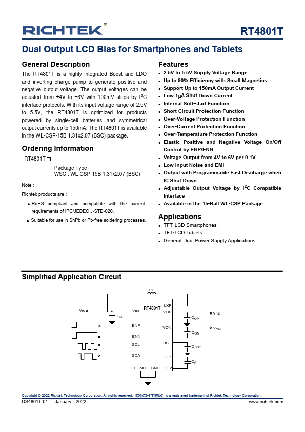 RT4801T is Dual Output LCD manufactured by Richtek.