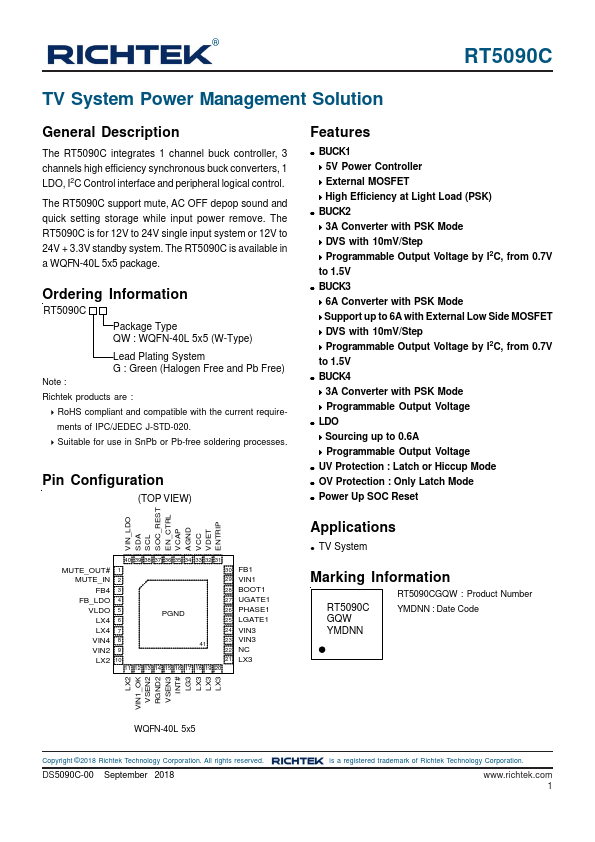 RT5090C Package Type QW : WQFN-40L 5x5 (W-Type) Lead Plating System G : Green (Halogen Free and Pb Free)