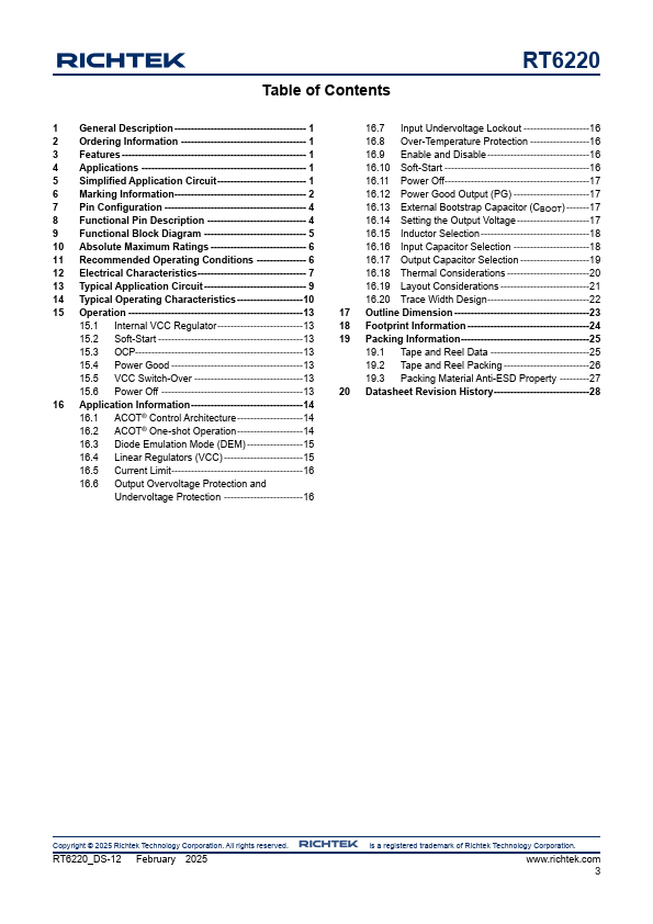 The RT6220 is a synchronous buck converter with Advanced Constant On-Time (ACOT® ) mode control, which provides a very fast transient response with no external compensators.