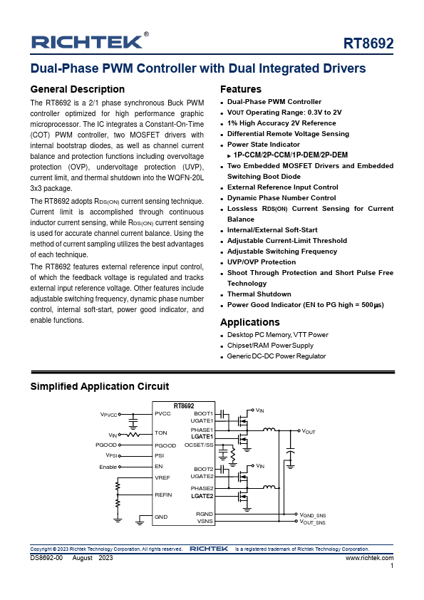 RT8692 is Dual-Phase PWM Controller manufactured by Richtek.