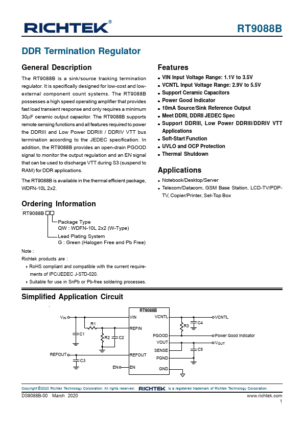RT9088B is DDR Termination Regulator manufactured by Richtek.
