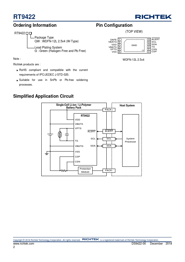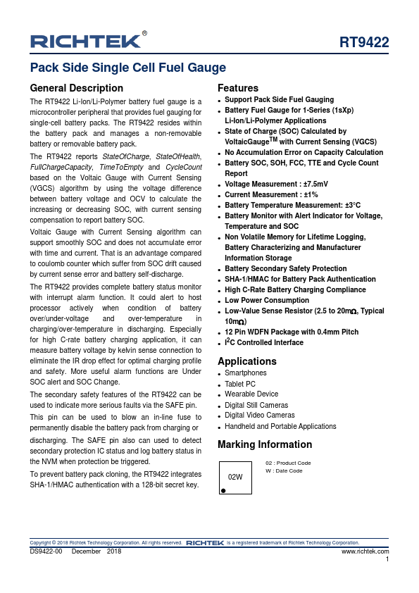 | RT9422A | Pack Side Single Cell Fuel Gauge |
