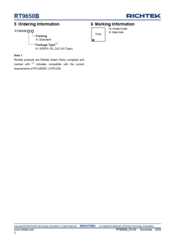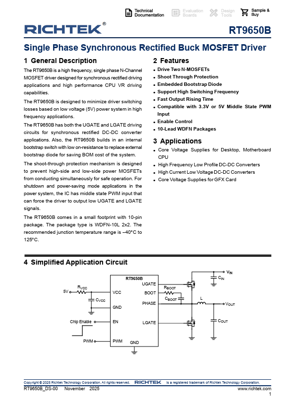 The RT9650B is designed to minimize driver switching losses based on low voltage (5V) power system in high frequency applications.