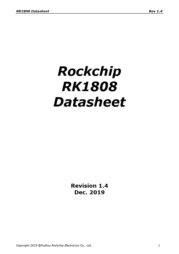 RK1808 Datasheet Rev 1.4 Rockchip RK1808 Datasheet Revision 1.4 Dec. 2019 Copyright 2019 ©Fuzhou Rockchip Electronics Co., Ltd. 1 RK1808 Datasheet Rev 1.4 Chapter 1 Introduction 1.1 Overview RK1808 is a high-performance, low power processor for neural network inference.