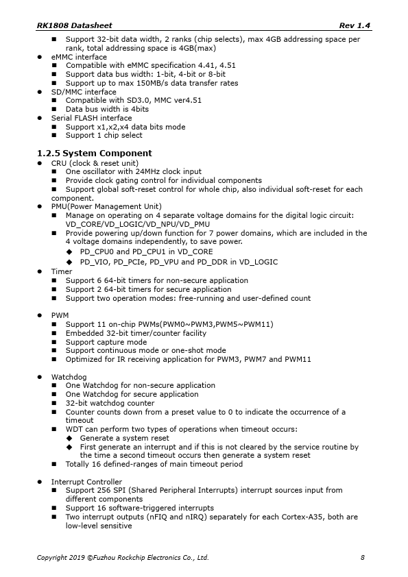- PD_CPU0: 1st Cortex-A35 + Neon + FPU + L1 I/D Cache