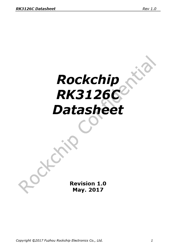 RK3126C Datasheet Rev 1.0 Rockchip RK3126C Datasheet Revision 1.0 May. 2017 Copyright ©2017 Fuzhou Rockchip Electronics Co., Ltd. 1 RK3126C Datasheet Rev 1.0 Chapter 1 Introduction RK3126C is a high performance Quad-core application processor for tablet.