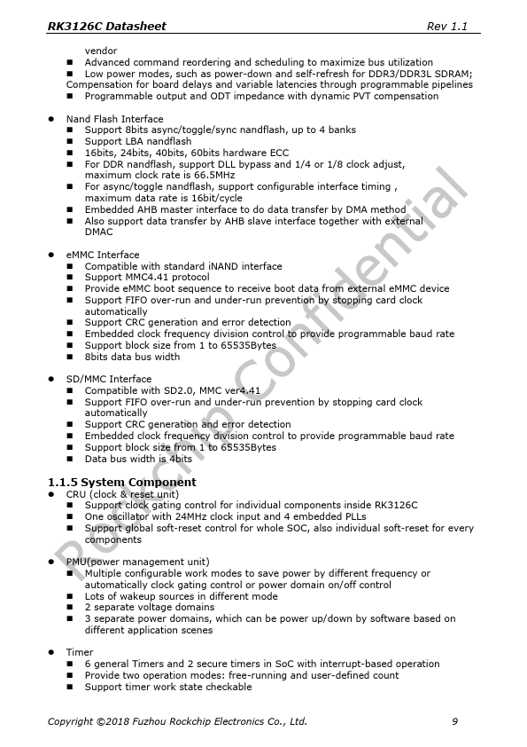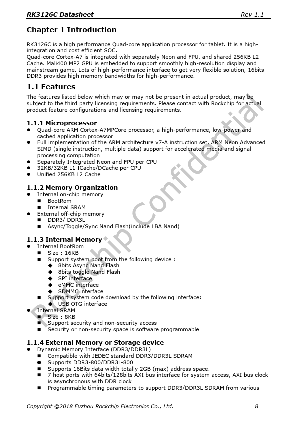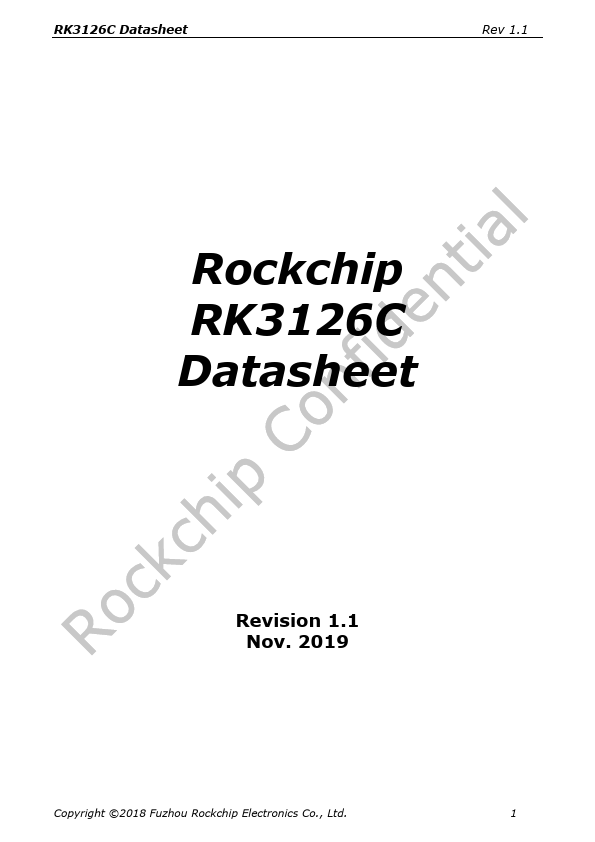 RK3126C Datasheet Rev 1.1 Rockchip RK3126C Datasheet Revision 1.1 Nov. 2019 Copyright ©2018 Fuzhou Rockchip Electronics Co., Ltd. 1 RK3126C Datasheet Rev 1.1 Chapter 1 Introduction RK3126C is a high performance Quad-core application processor for tablet.