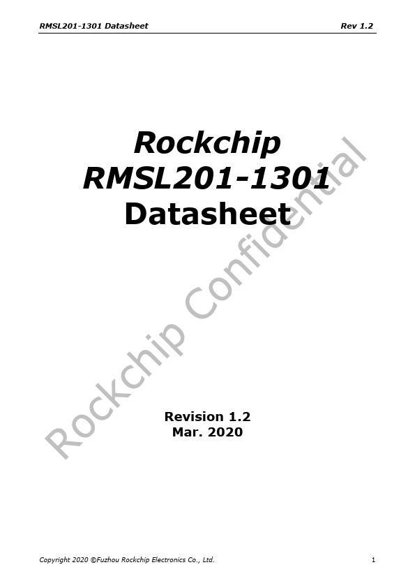 Overview: RMSL201-1301 Datasheet Rev 1.2 Rockchip RMSL201-1301 Datasheet Revision 1.2 Mar. 2020 Copyright 2020 ©Fuzhou Rockchip Electronics Co., Ltd. 1 RMSL201-1301 Datasheet Rev 1.
