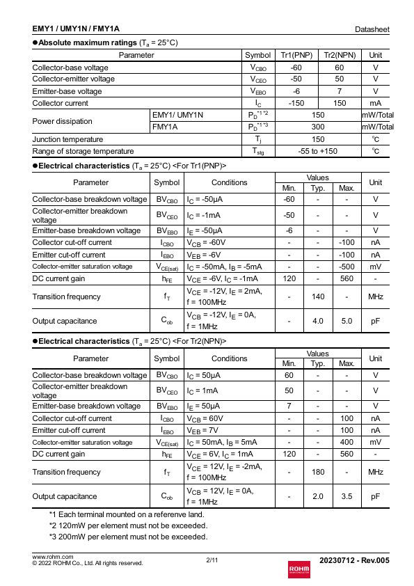 | Datasheet | FMY1A_Rohm.pdf |