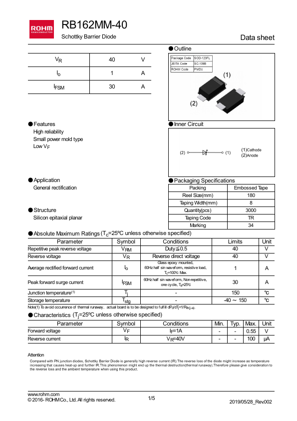 | Datasheet | RB162MM-40-Rohm.pdf |
