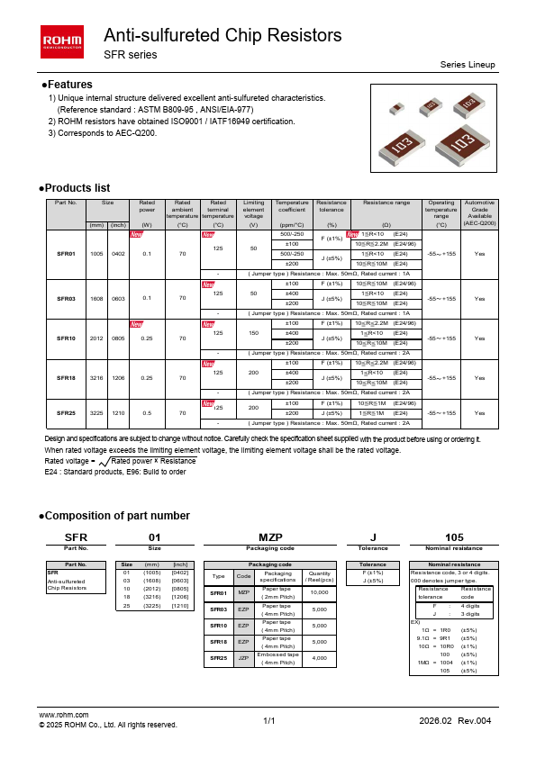 SFR01 is Anti-sulfureted Chip Resistors manufactured by ROHM.