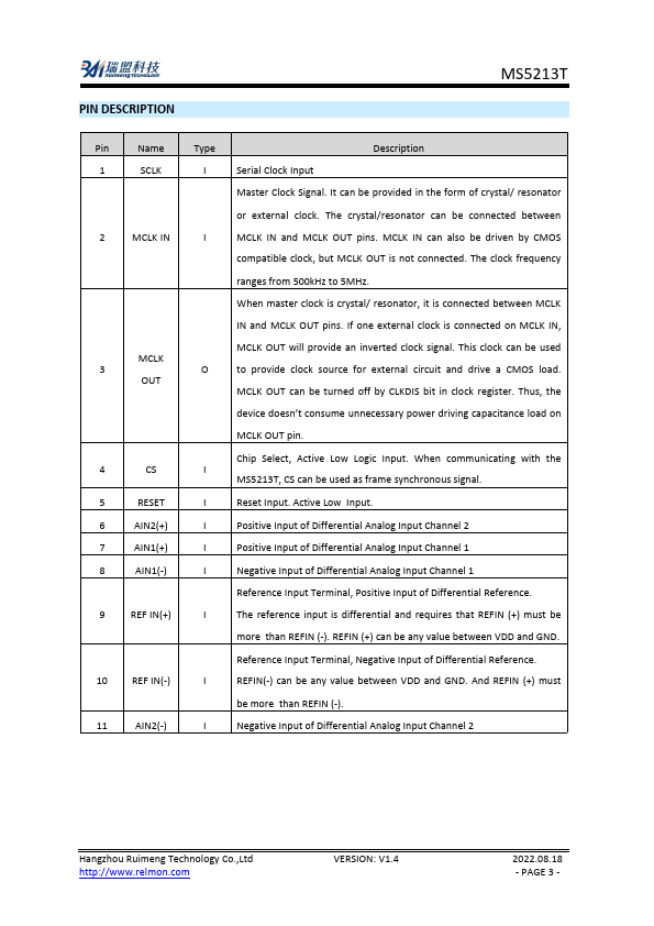 The MS5213T is an analog-to-digital converter for low-frequency measurement.