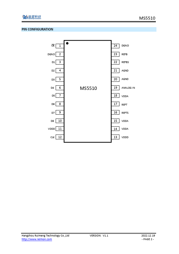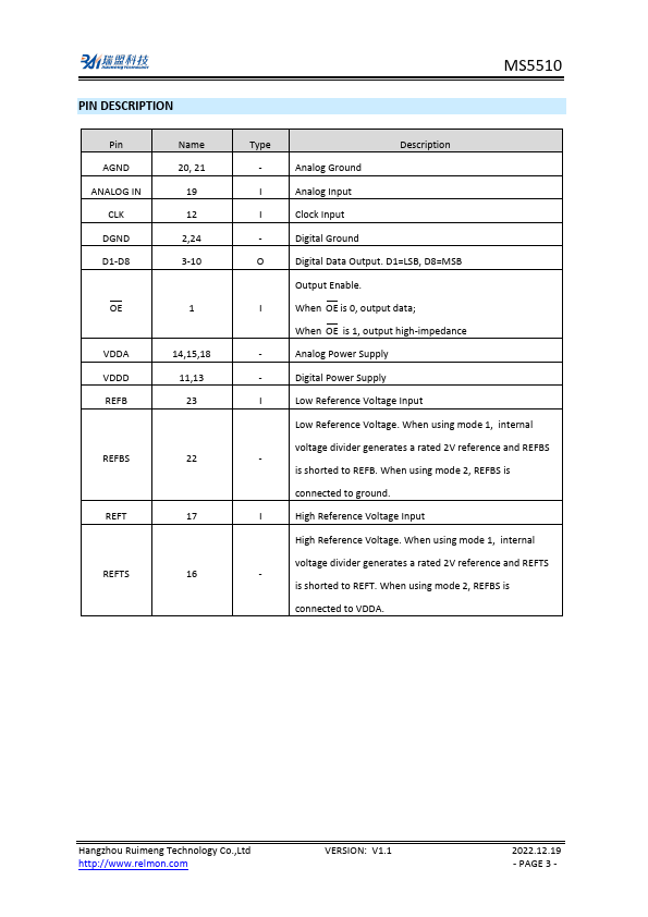 The MS5510 is a 8-bit, 20MSPS analog-to-digital converter (ADC) using semiflash architecture.