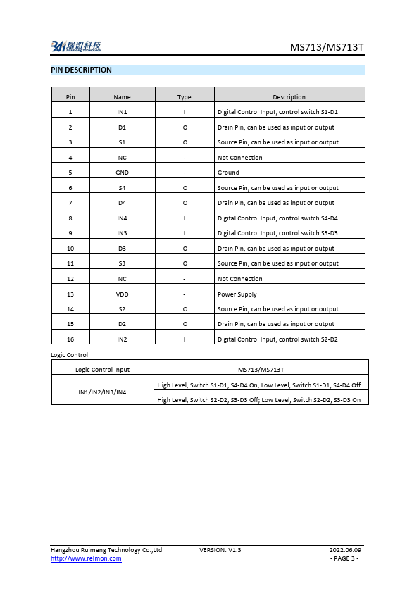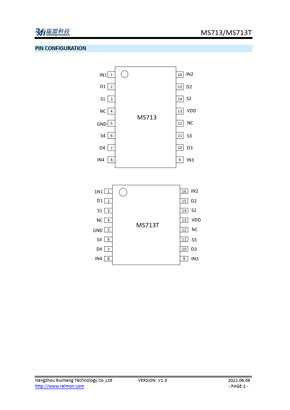 The MS713/MS713T is a CMOS optional four-channel switch with several.