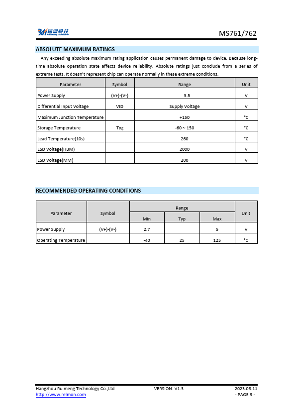This datasheet PDF includes multiple part numbers: MS762, MS761. Please refer to the document for exact specifications by model. |