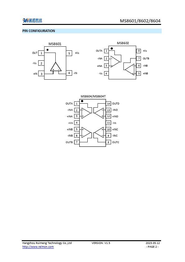 The MS8601,MS8602,MS8604 are single,dual,four channel rail-to-rail input/output and single power amplifiers respectively.
