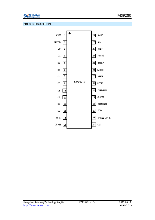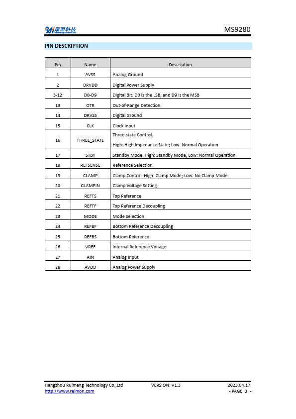 The MS9280 is a single-chip, single power supply, 10bit, 35MSPS analog-to-digital converter.