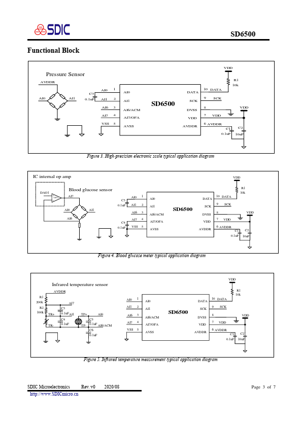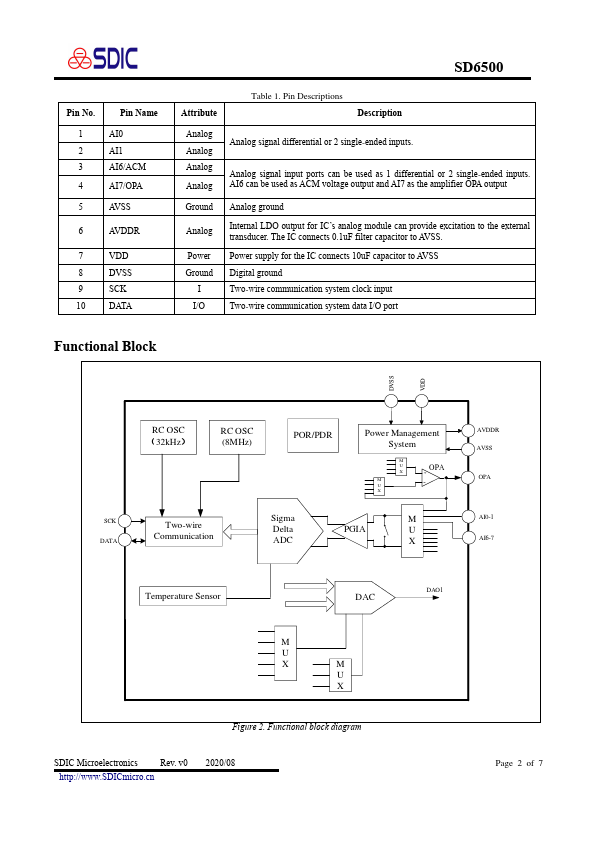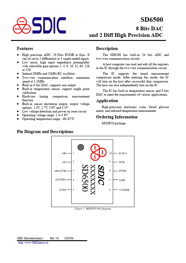 The SD6500 has built-in 24 bits ADC and two-wire munication circuits. A host puter can read and edit all the registers in the IC through the two-wire munication circuit. The IC supports the timed measurement parison mode.