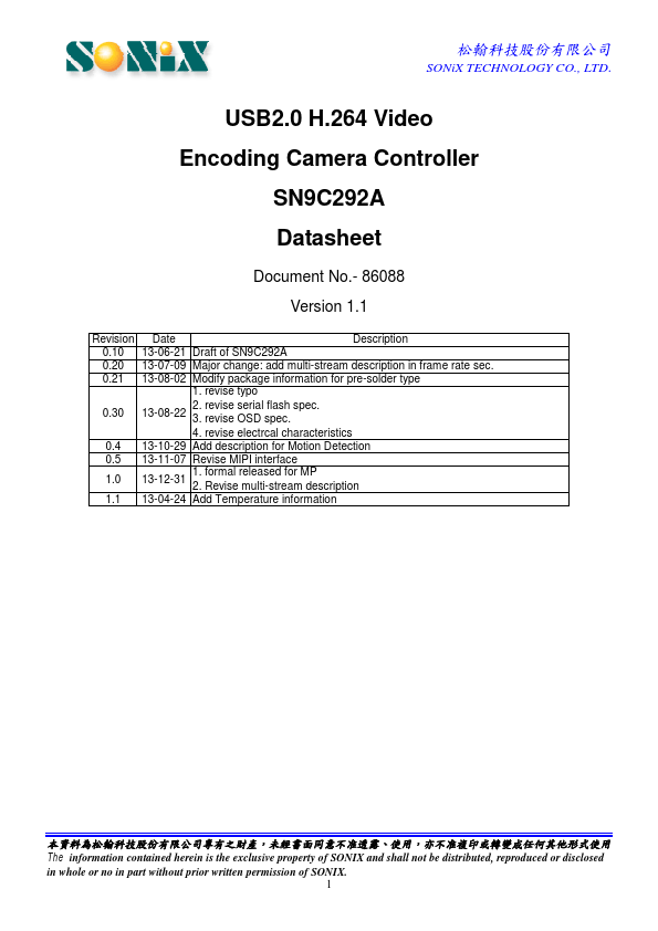 | Description | USB2.0 H.264 Video Encoding Camera Controller |