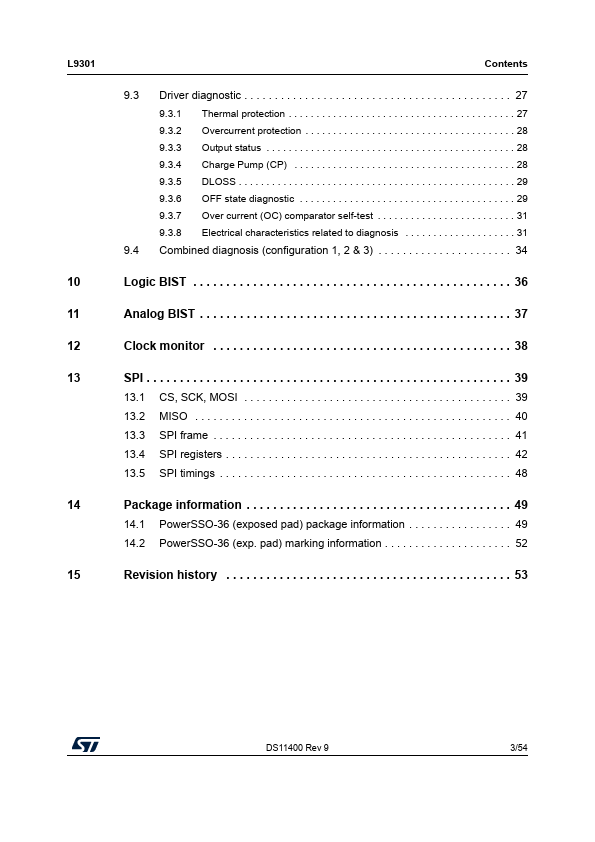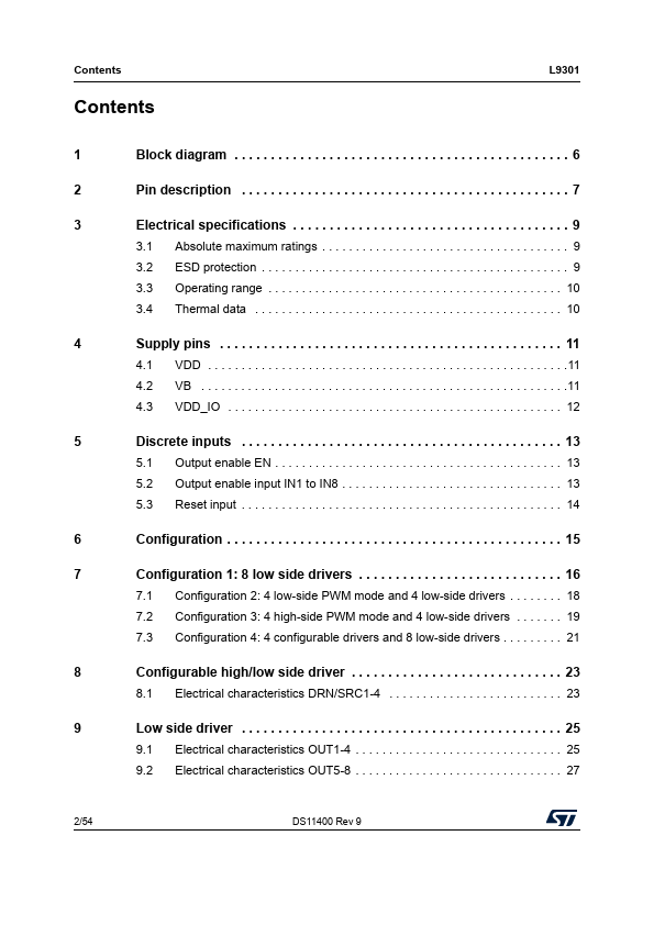 The L9301 is a SPI (Serial Peripheral Interface) controlled octal channel with 4 high/low and 4 low side drivers with the possibility to use four integrated PowerMOS as recirculation diodes for PWM load driving.