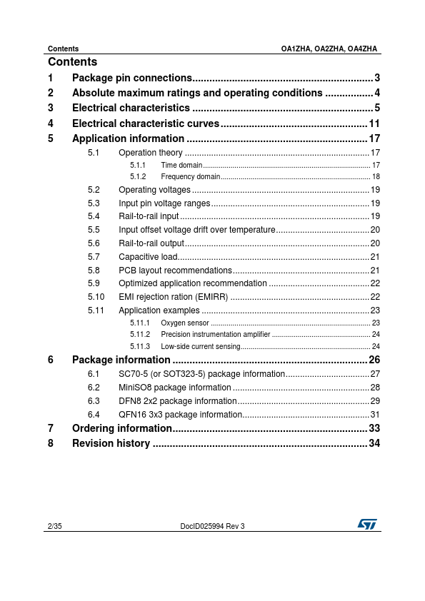 - Very high accuracy and stability: offset voltage 5 µV max at 25 °C, 8 µV over full temperature range (-40 °C to 125 °C).