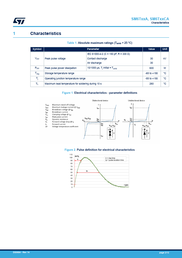 The SM6T series are designed to protect sensitive equipment against electrostatic discharges according to IEC 61000-4-2 and MIL STD 883, method 3015, and electrical overstress according to IEC 61000-4-4 and 5. This device is more generally used against surges below 600 W (10/1000 μs). The Planar technology makes it suitable for high-end equipment and SMPS where low leakage current and high junction temperature are...