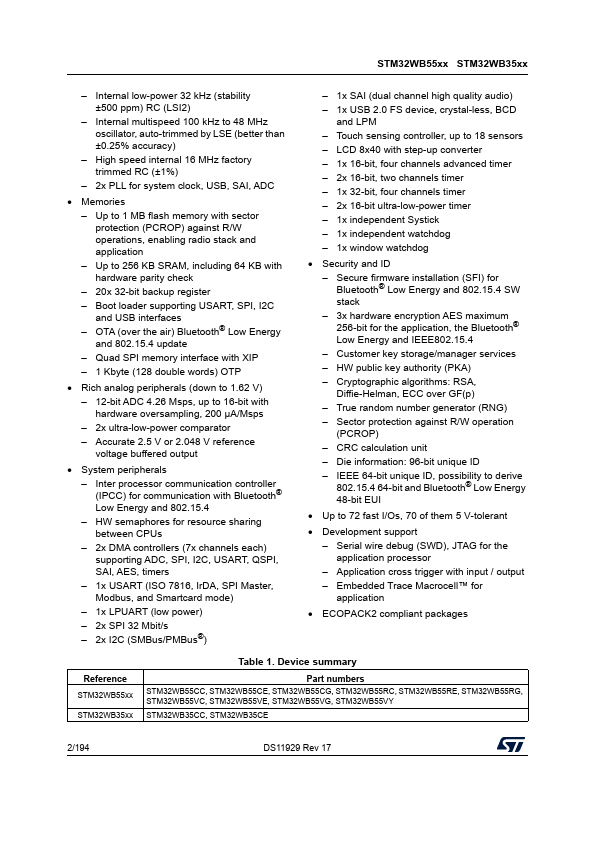 This page provides the datasheet information for the STM32WB55VE, a member of the STM32WB55CC Multiprotocol wireless 32-bit MCU family.
