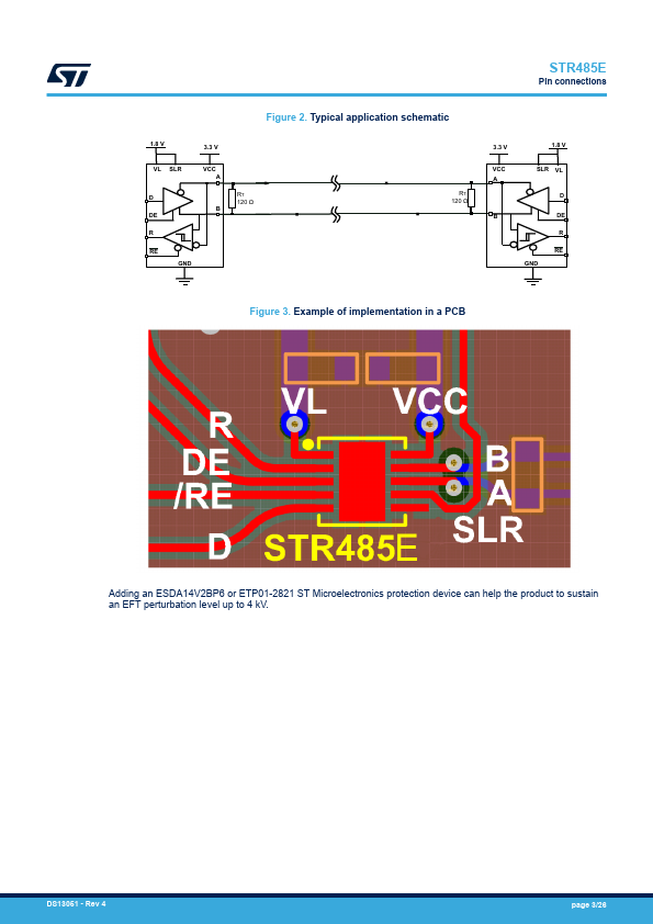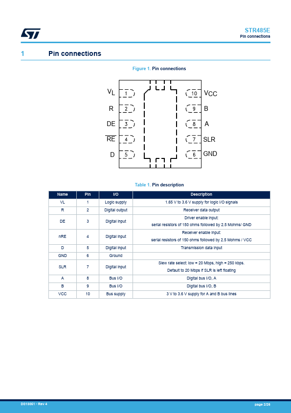 The STR485E is a low power differential line transceiver for data transmission standard RS485 applications in half-duplex mode.