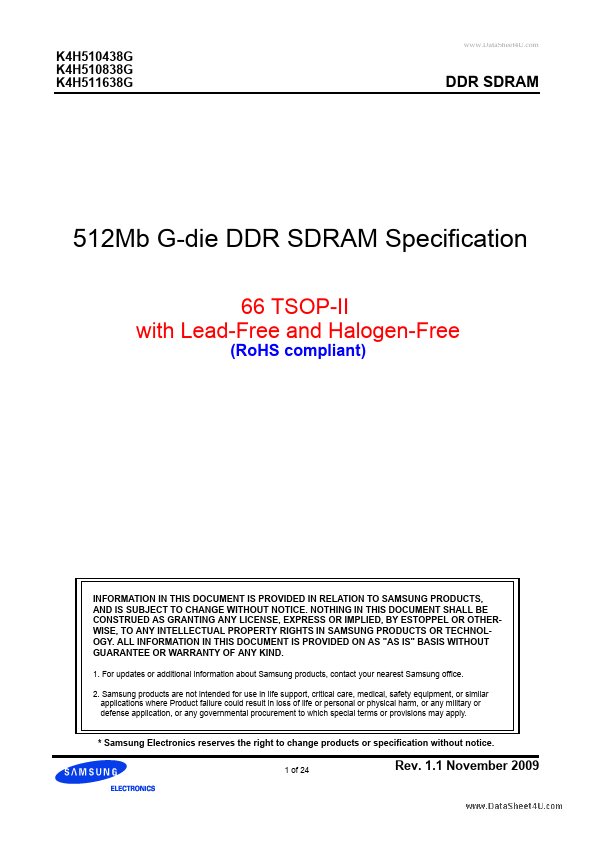 - VDD : 2.6V ± 0.1V, VDDQ : 2.6V ± 0.1V for DDR400