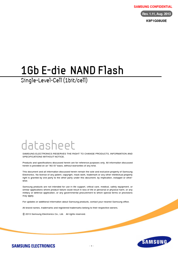 | K9F1G08U0D | Samsung Semiconductor | 1Gb NAND Flash |