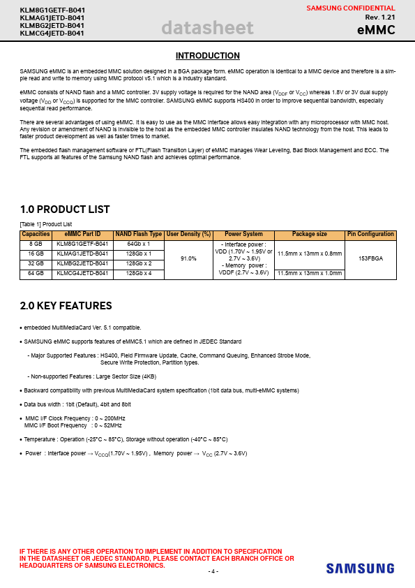 SAMSUNG CONFIDENTIAL Rev. Products and specifications discussed herein are for reference purposes only. All information discussed herein is provided on an "AS IS" basis, without warranties of any kind.