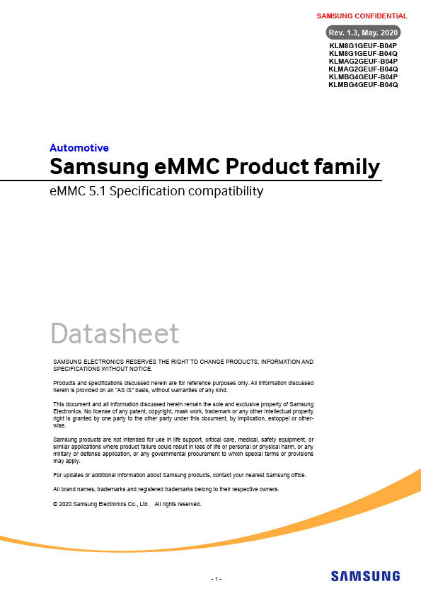 KLMBG4GEUF-B04P is Automotive eMMC manufactured by Samsung Semiconductor.