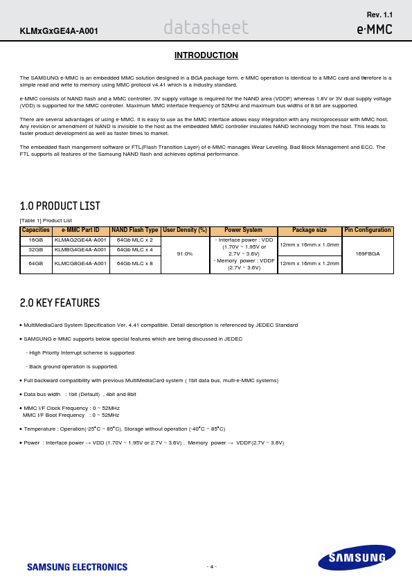 | KLMCG8WE4A-A001 | embedded MMC solution |