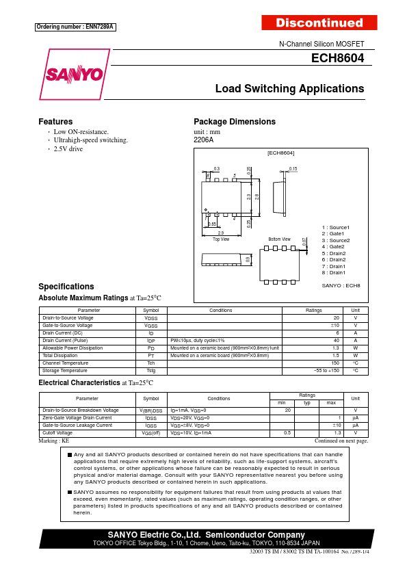 | Datasheet | ECH8604_SanyoSemiconDevice.pdf |