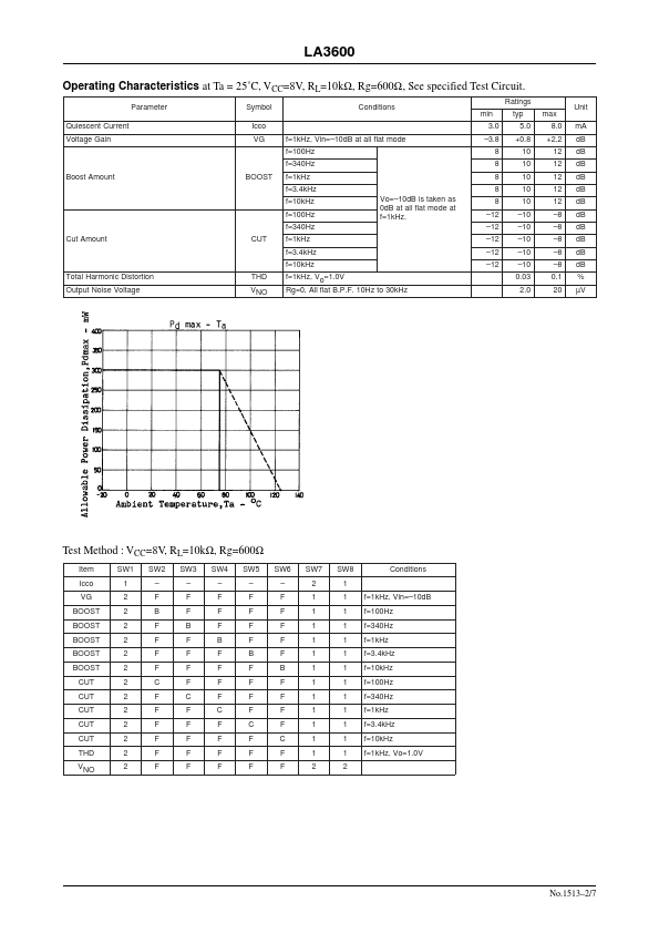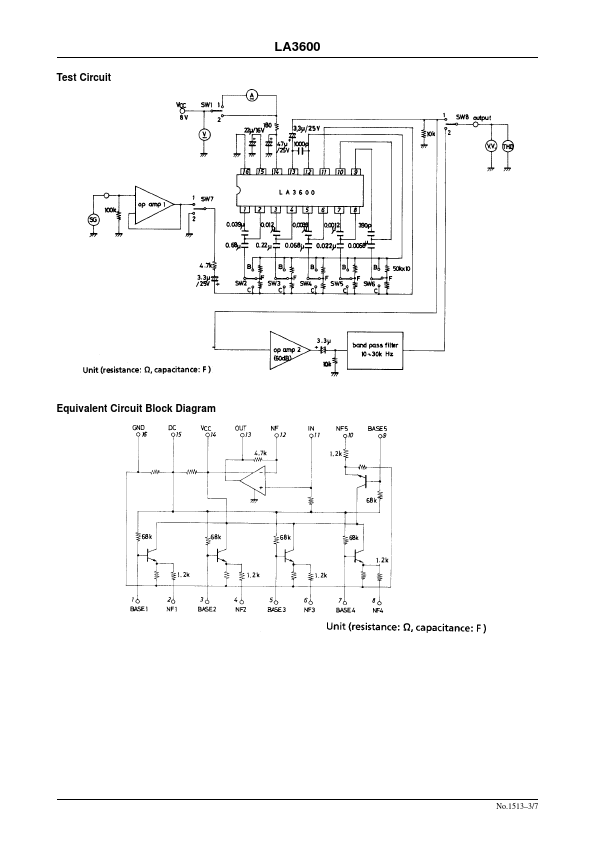 Ordering number:ENN1513D Monolithic Linear IC LA3600 5-Band Graphic Equalizer Applications Portable ponent stereos, tape-recorders, radio-cassette recorders, car stereos.