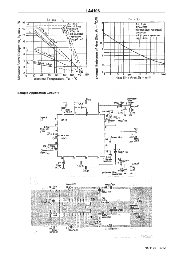 Ordering number:EN4108R Monolithic Linear IC LA4108 5.3W 2-Channel AF Power Amplifier.