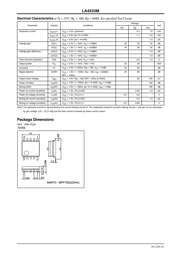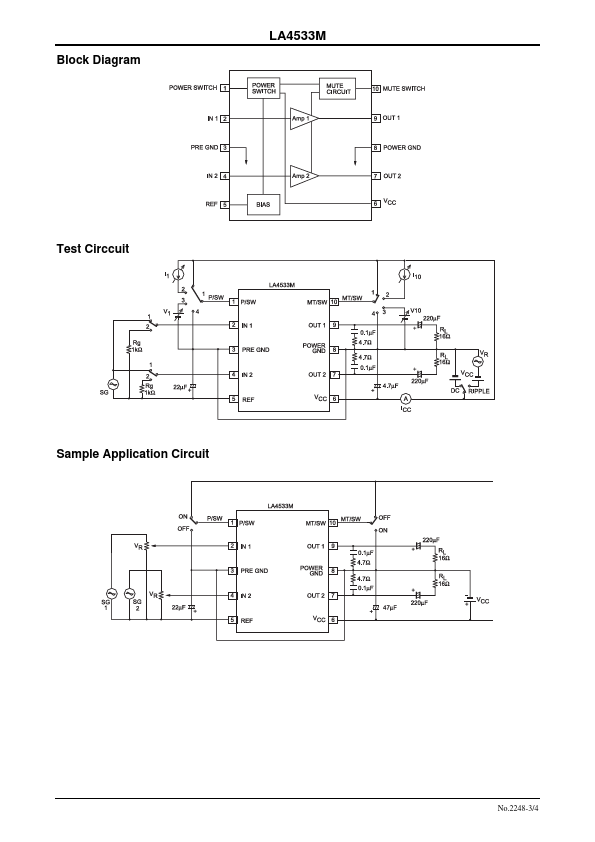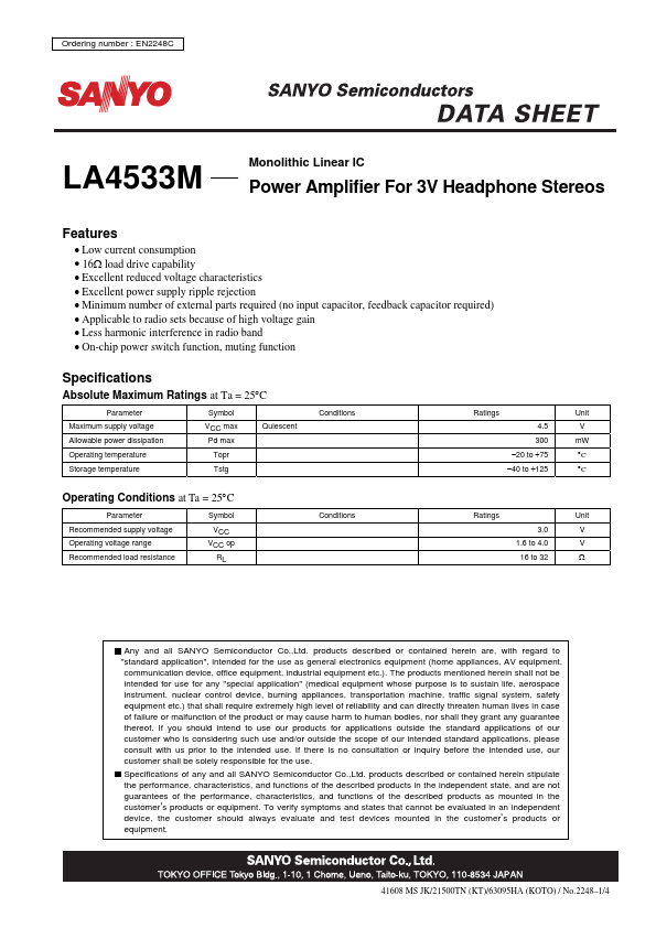 EN2248C LA4533M Monolithic Linear IC Power Amplifier For 3V Headphone Stereos.