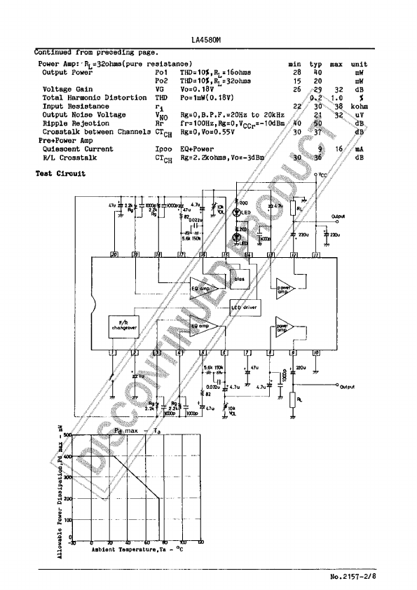 LA4580M is 2-Channel Preamp + Power Amp manufactured by SANYO.
