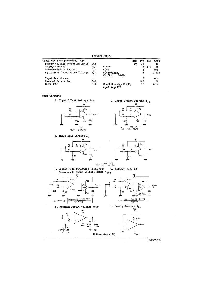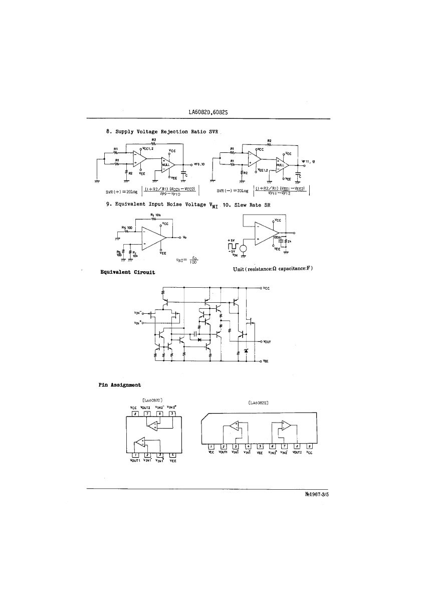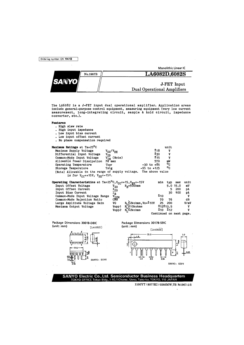 Ordering number:EN 1967,B No.l967B i Monolithic Linear IC LA6082D,6082S J-FET Input Dual Operational Amplifiers The LA6082 is a J-FET input dual operational amplifier. Application areas include general-purpose control equipment, measuring equipment (very low current measurement, long-integrating circuit, sample & hold circuit, impedance converter, etc.).