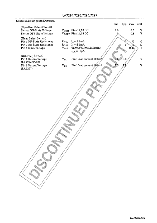 EN 2767A LA7295 Series Monolithic Linear IC VTR Audio Signal Recording / Playback Processor.
