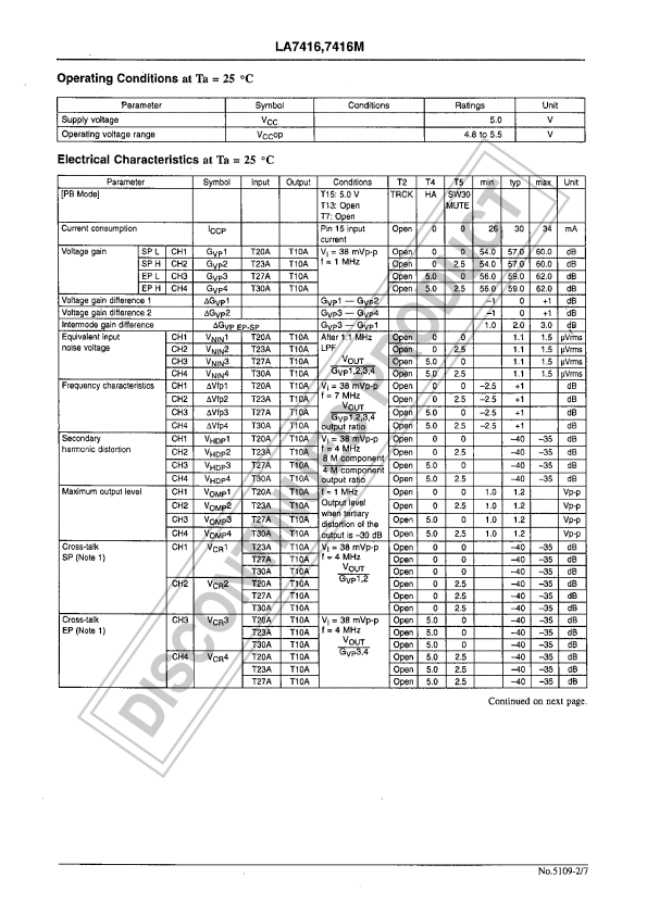 EN 5109 LA7416 LA7416M Monolithic Linear IC Playback Amplifier and Record Amplifier for VHS VCRs.