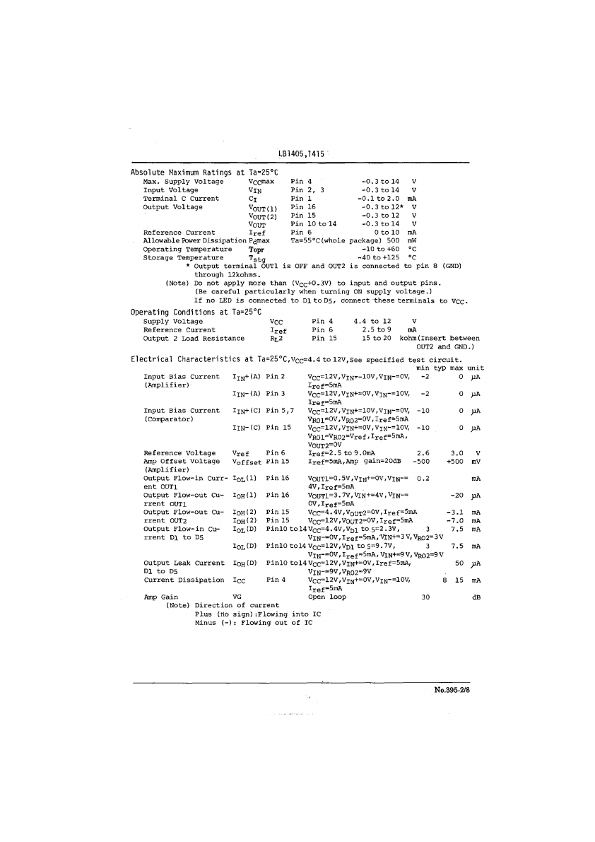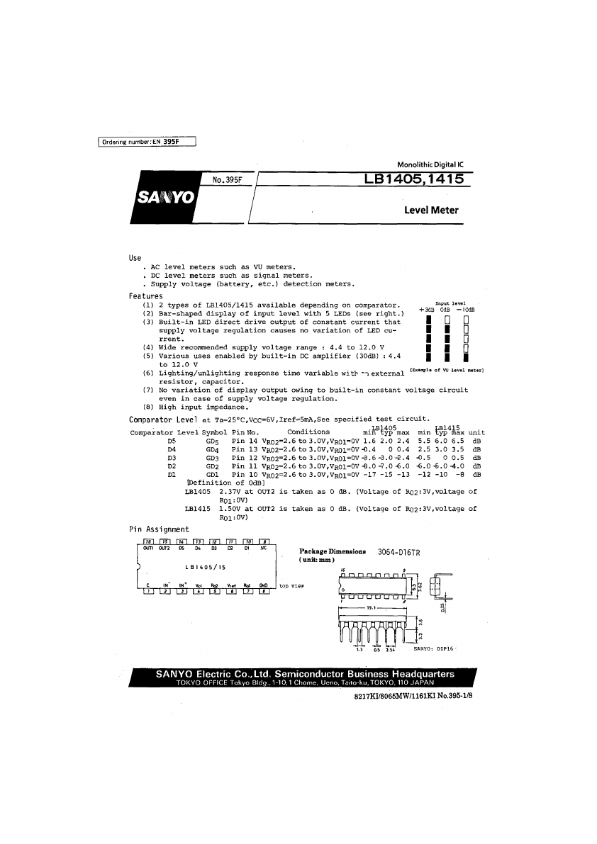 Ordering number:EN 395F iSAYO N0.395F LB Monolithic Digital IC 1405,1415 Level Meter Use . AC level meters such as VU meters. DC level meters such as signal meters.
