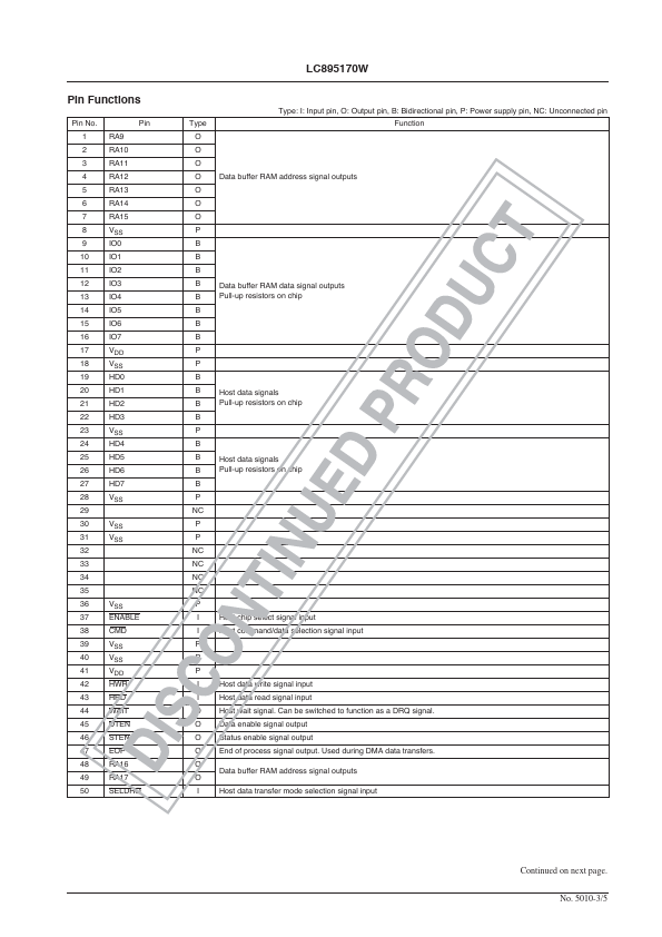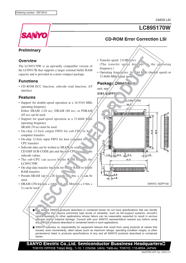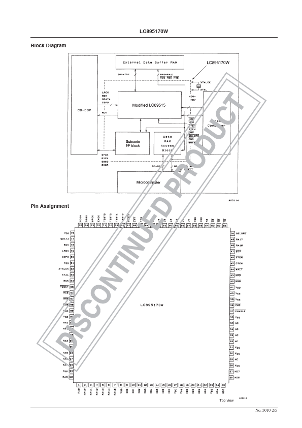 The LC895170W is an upwardly patible version of the LC89517K that supports a larger external buffer RAM capacity and is provided in a more pact package.