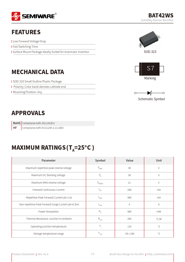 | Datasheet | BAT42WS-Semiware.pdf |