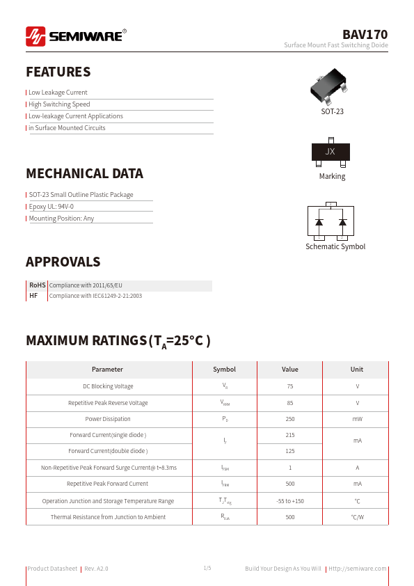 | Datasheet | BAV170-Semiware.pdf |