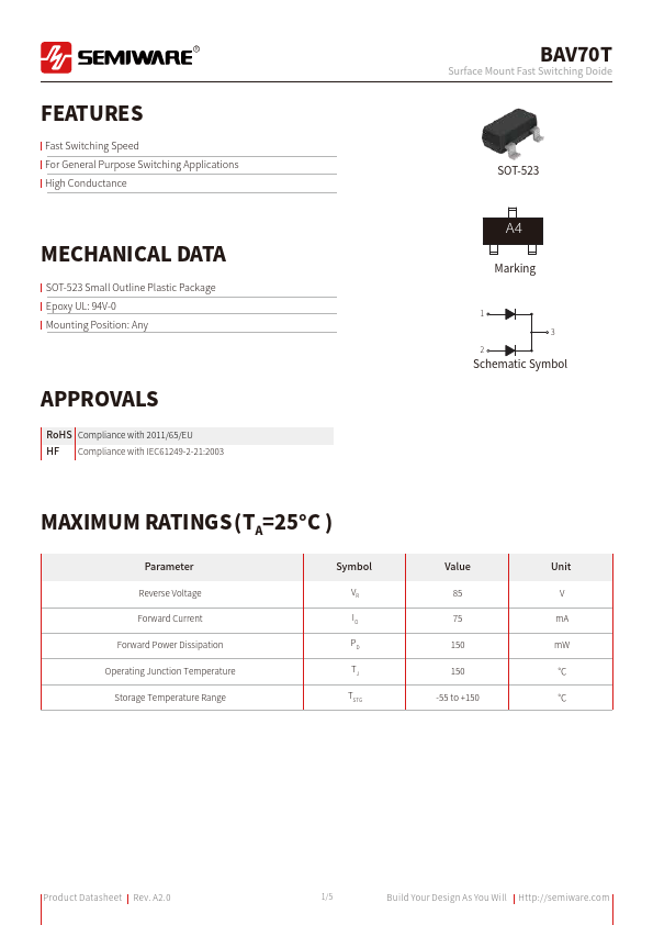 | Datasheet | BAV70T-Semiware.pdf |