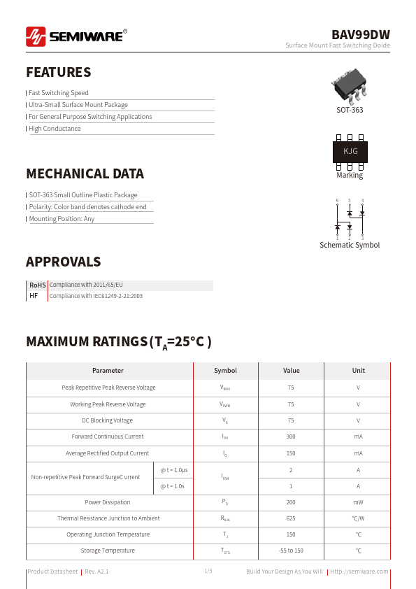 | BAV20WS | Surface Mount Fast Switching Doide |