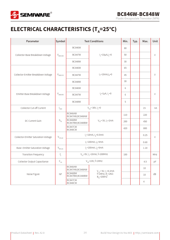| BC848BW | NPN Plastic-Encapsulate Transistor |