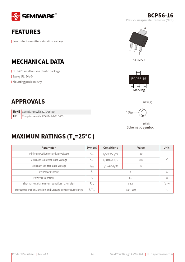 | Part number | BCP56-16 |